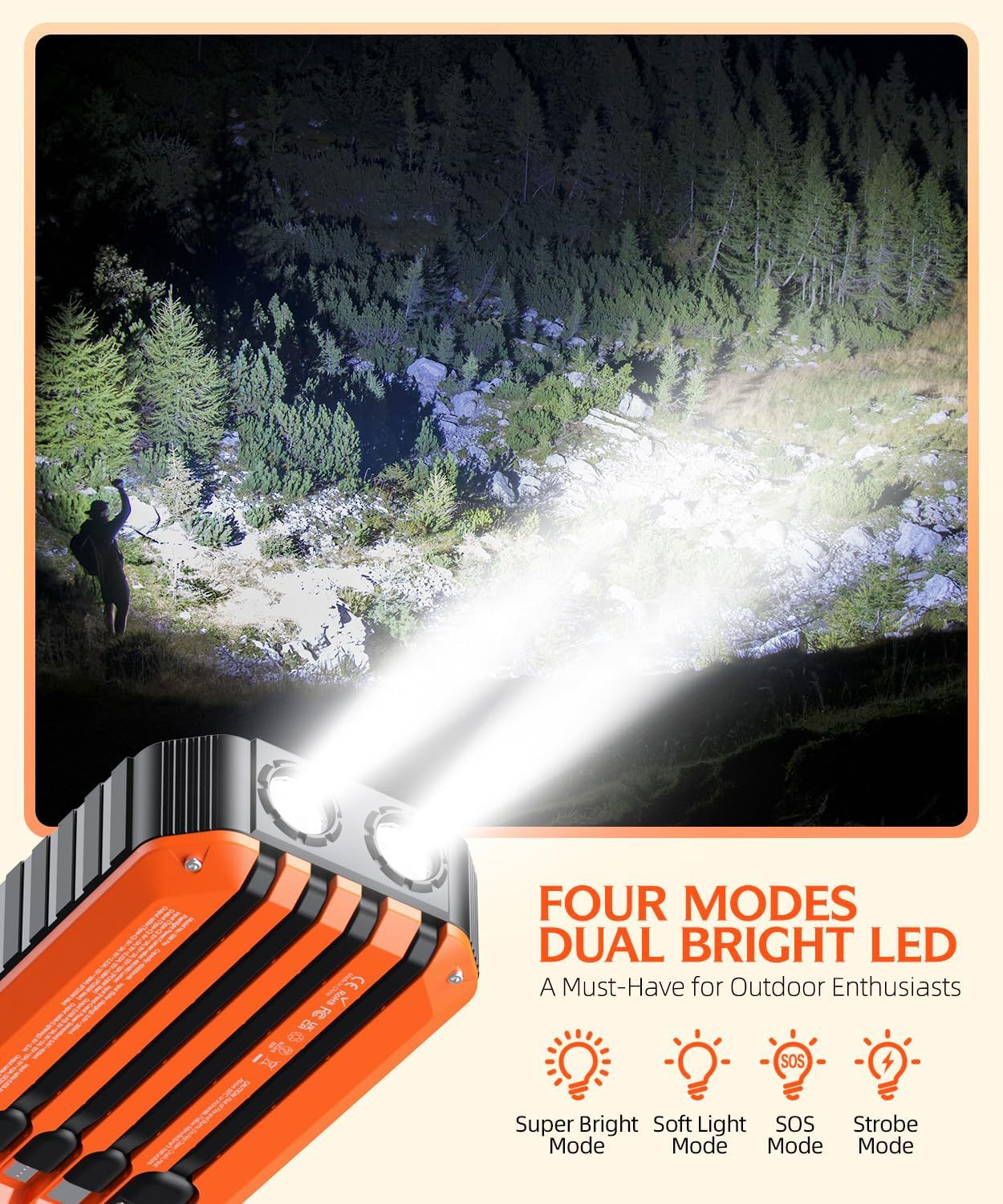 Hand-cranked power generation solar energySelf-contained cable fast-charging multi-functional emergency power bank with ultra-large capacity